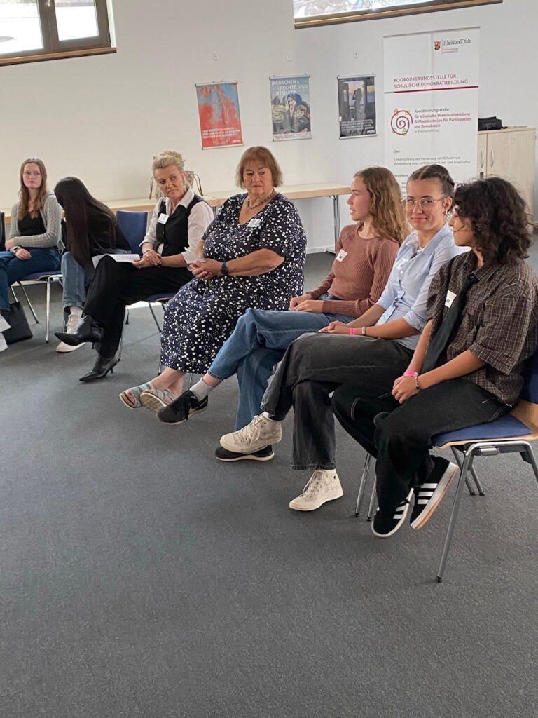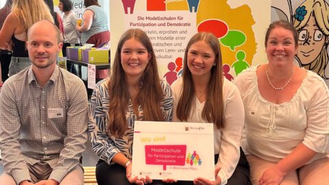 In einem gemeinsamen Netzwerk-Workshop stellten Schülerinnen und Schüler von drei Modellschulen für Partizipation und Demokratie RLP beim 20. Demokratie-Tag RLP am 4. September 2025 Ideen und Projekte der Beteiligung vor.