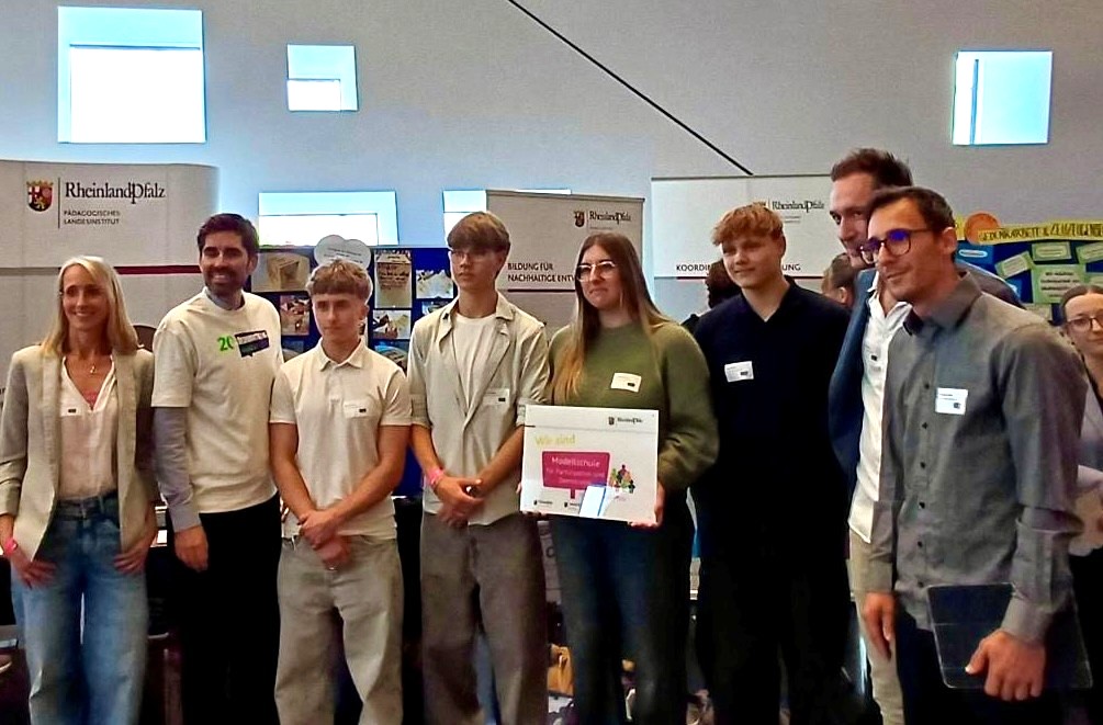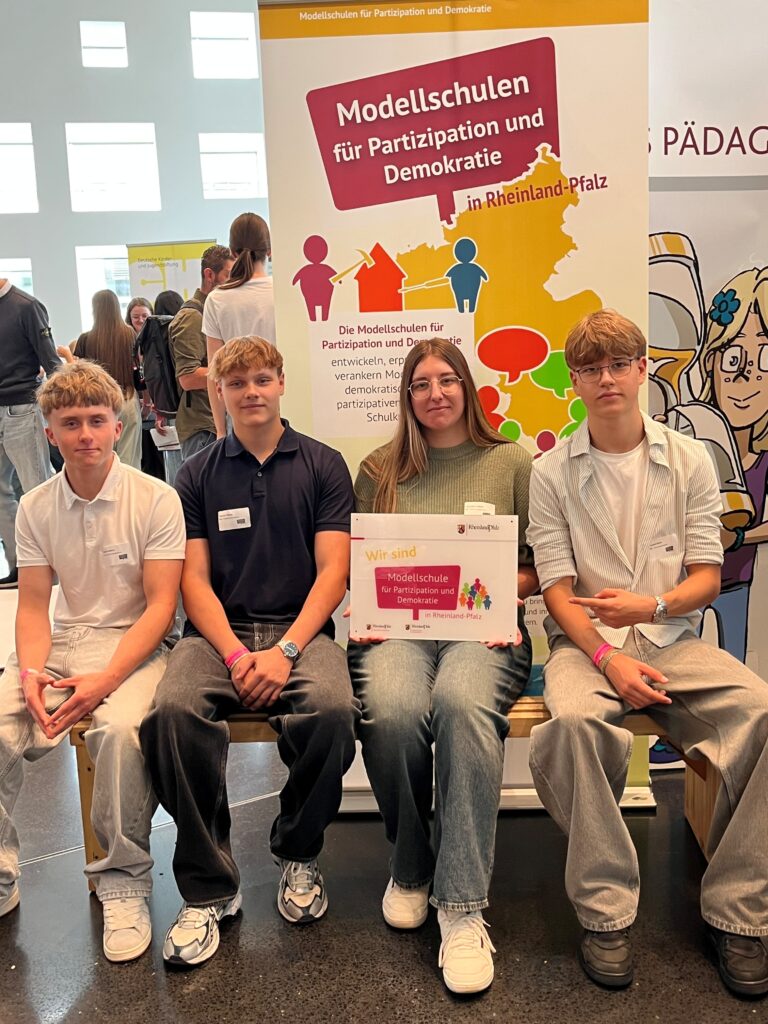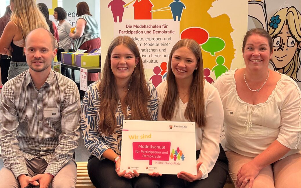 Wir freuen uns über neue Schulen im Netzwerk der Modellschulen für Partizipation und Demokratie Rheinland-Pfalz: Die Private Maria-Ward-Schule Landau (Bild oben) und die BBS 1 Technik Kaiserslautern (Bild unten) wurden beim 20. Demokratie-Tag RLP 2025 am 04.09.2025 am Stand des Pädagogischen Landesinstituts RLP feierlich ins Netzwerk aufgenommen.